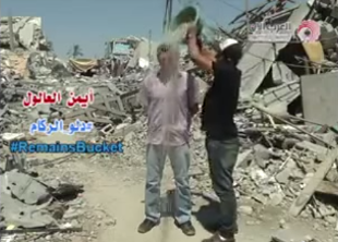 Una campagna, ispirata a #icebucketchallenge, per richiamare l'attenzione mondiale sul dramma che sta vivendo la popolazione palestiense a Gaza. Macerie al posto dell'acqua che è un bene prezioso, "non può essere sprecato"