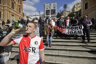 Nel centro storico della capitale, si sono registrati diversi scontri tra forze dell'ordine e tifosi del Feyenoord, prima della partita di Europa League, iniziata alle 19 tra la squadra olandese e la Roma. Dopo i tafferugli della scorsa notte in piazza Campo de' Fiori, nel pomeriggio circa 500 ultras olandesi si sono concentrati in Piazza di Spagna, dove si sono verificati dei nuovi disordini con la polizia a presidio della piazza.