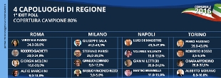 Ecco i risultati degli exit poll diffusi alla chiusura delle urne per le elezioni comunali a Roma, Milano, Napoli e Torino.