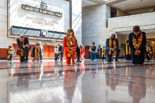 Biden incontra i familiari di Floyd. Dem in ginocchio per otto minuti e 46 secondi al Congresso