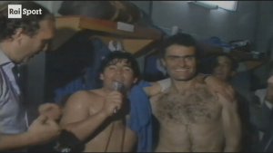 Era il 1987. Galeazzi entrò nello spogliatoio della squadra e lasciò il microfono a Maradona...