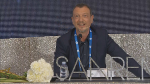 Amadeus mi ha detto "sei migliorato, fra 3 mesi compi 60 anni e ti trovo figo", scherza lo showman in sala stampa all'Ariston, "ti voglio al mio fianco, né avanti né indietro"